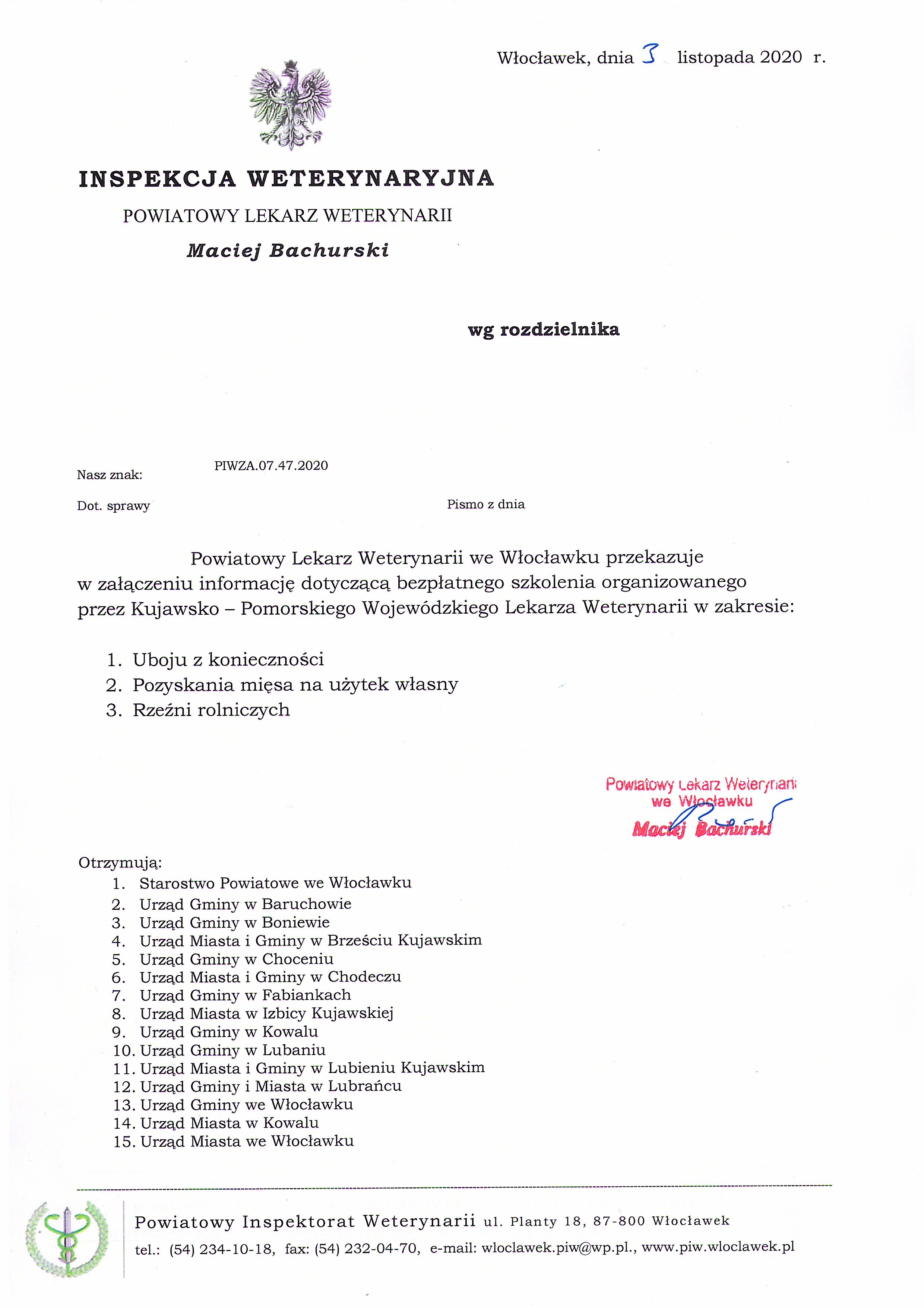 | Pismo Inspekcji Weterynaryjnej | dodany: 08:08, 04.11.2020 | przez: Łukasz Stolarski | |