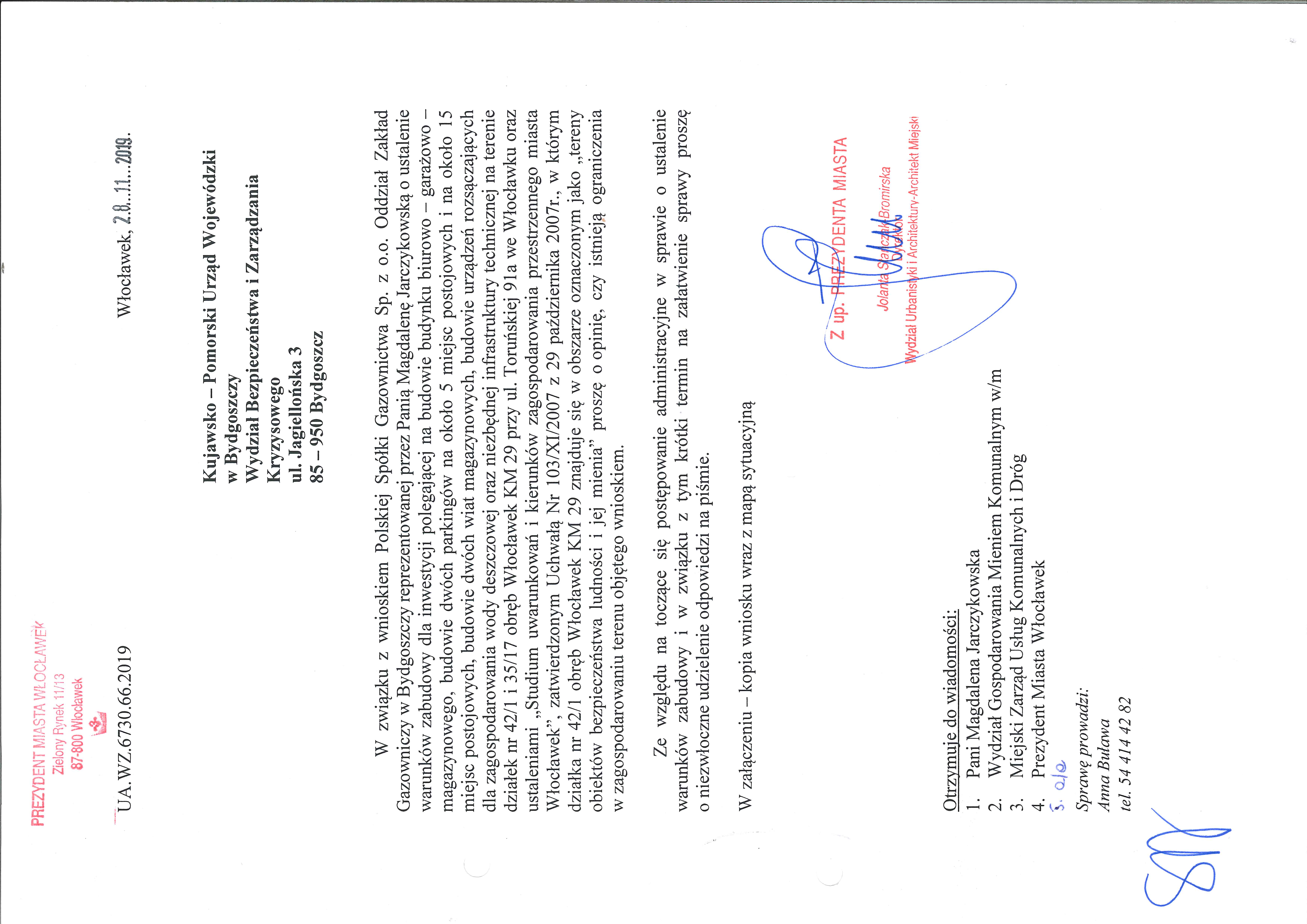 | wytworzono: | data: 08:17 03.12.2019 | przez: Z up. Prezydenta Miasta Jolanta Stańczak - Bromirska Dyrektor Wydziału Urbanistyki i Architektury | |